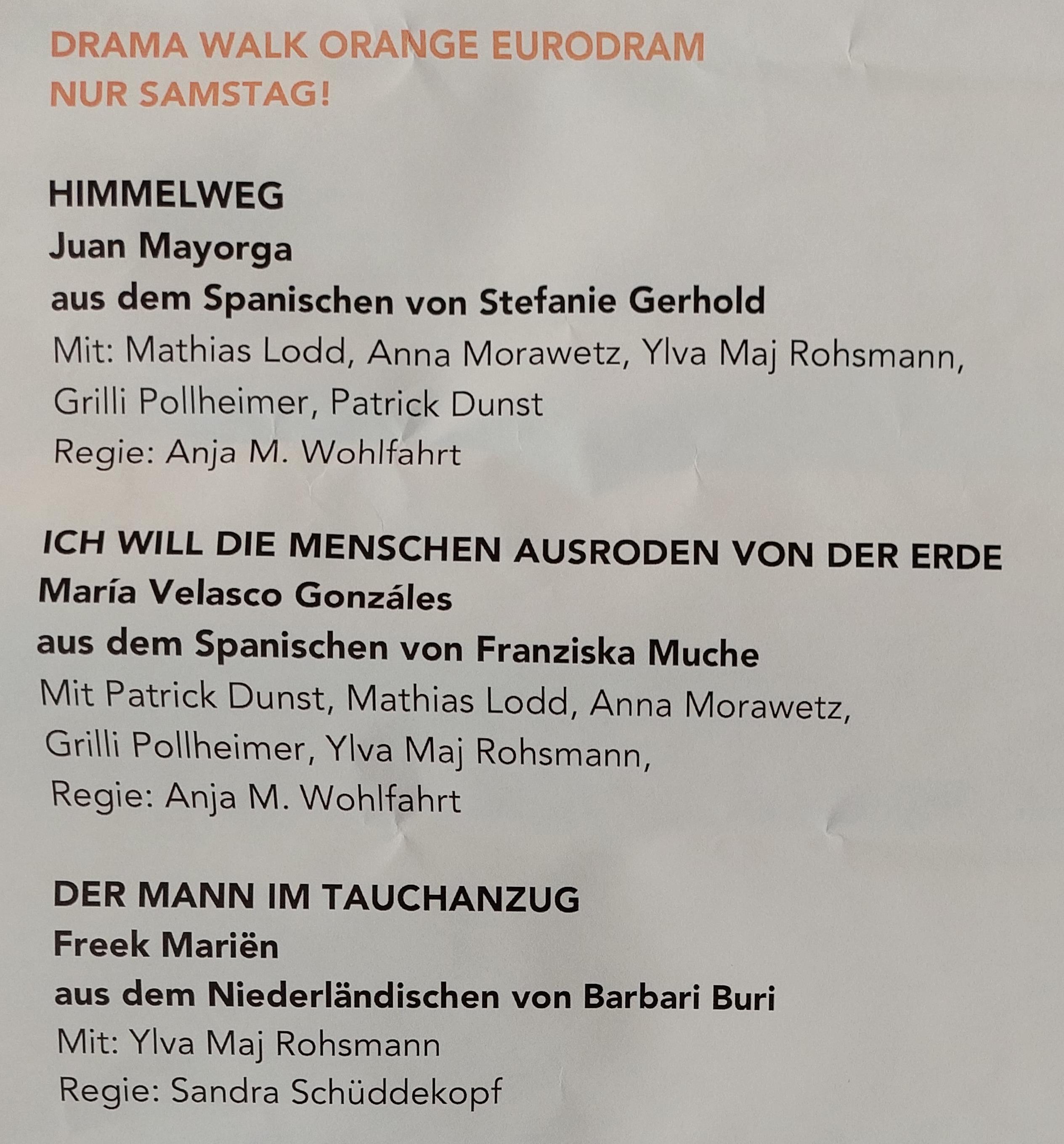 Wir danken Edith Draxl und allen Beteiligten des Dramatiker:innenfestivals für die hervorragende Zusammenarbeit und die Übernahme vieler Kosten, dem Deutschen Literaturfonds für die EURODRAM-Förderung und Flanders Literature für die Reiseförderung für den Autor Freek Mariën.