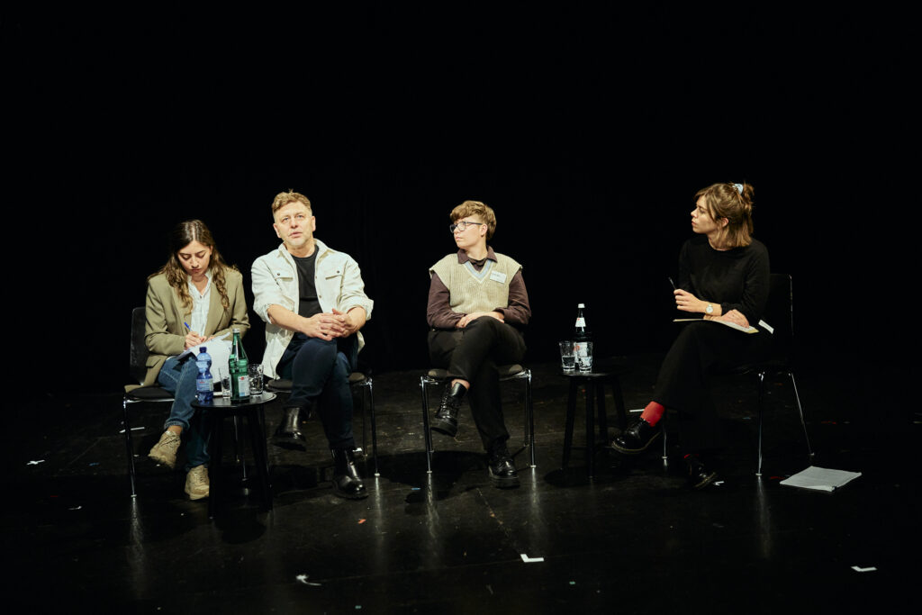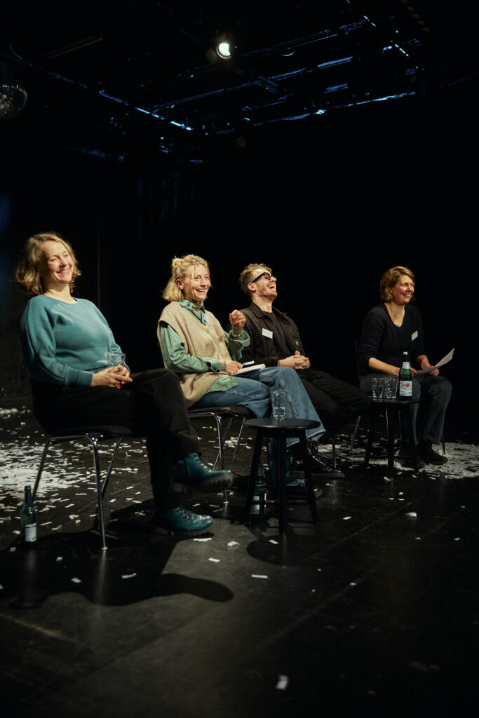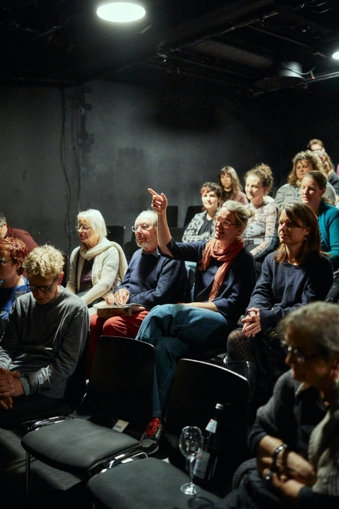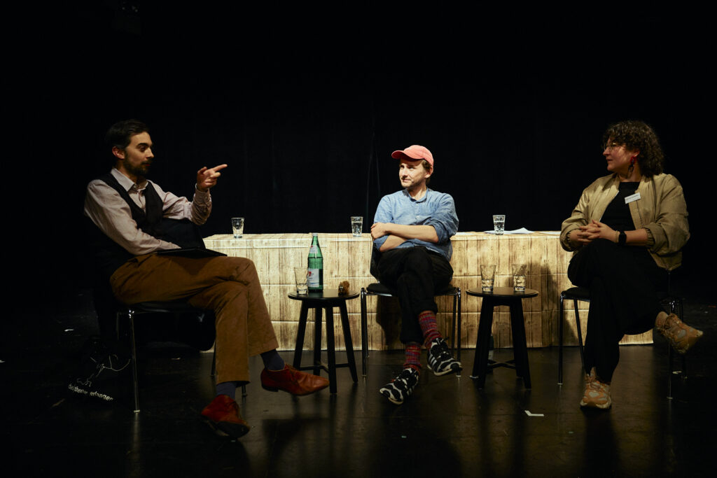 On Sunday, Hadar Galron’s impressive monologue Pfeifen [שריקה / Whistle] (translated from Hebrew by Matthias Naumann) immersed us in the perspective of a woman who is the daughter of Shoah survivors and struggles to find her own identity outside of this total stigmatisation. Fiona Metscher gave an impressive performance as this character. The intense discussion with the author and translator that followed also made it clear how close the topic got to the audience.