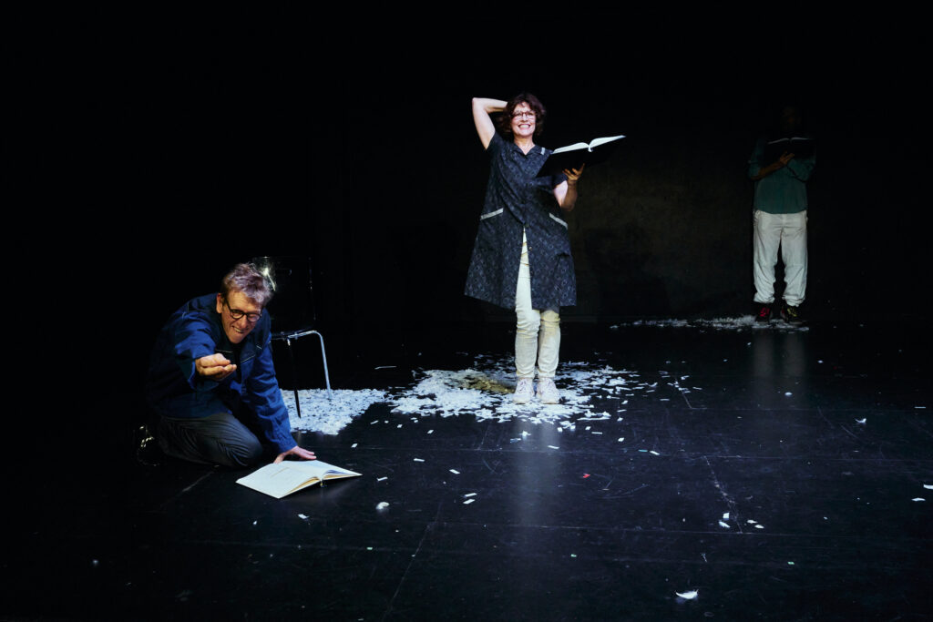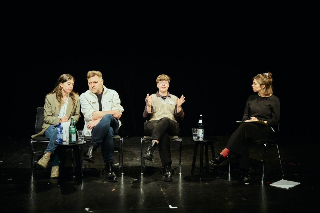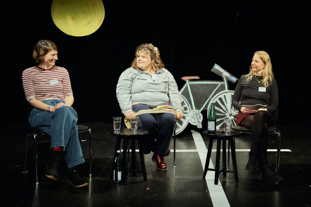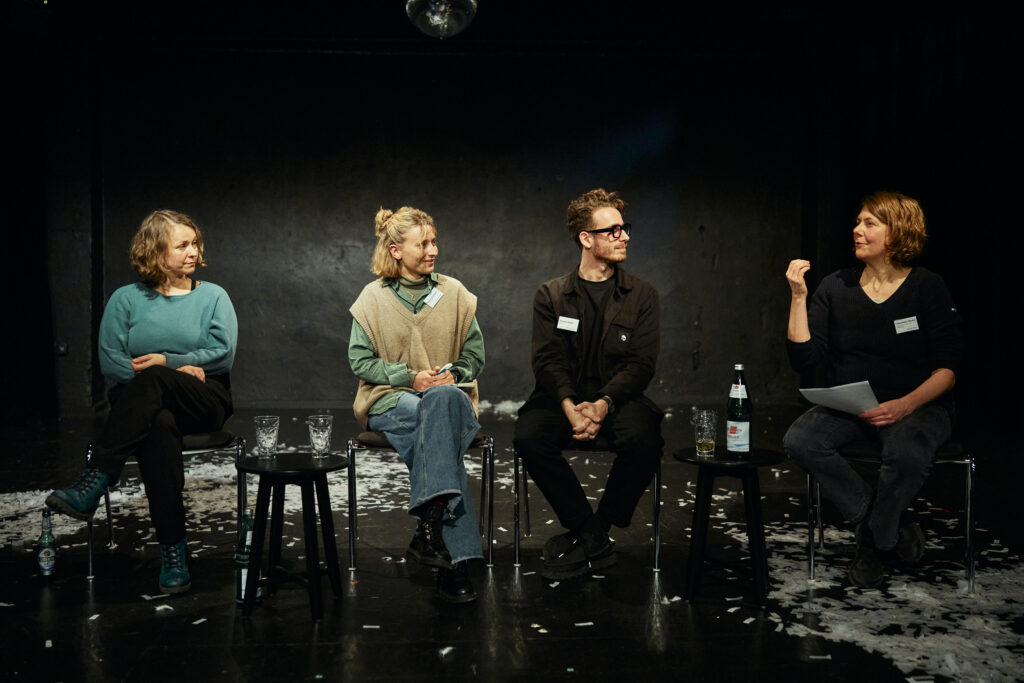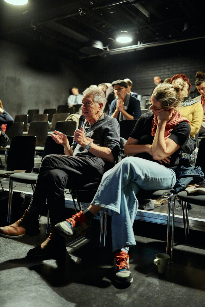 On Sunday, Hadar Galron’s impressive monologue Pfeifen [שריקה / Whistle] (translated from Hebrew by Matthias Naumann) immersed us in the perspective of a woman who is the daughter of Shoah survivors and struggles to find her own identity outside of this total stigmatisation. Fiona Metscher gave an impressive performance as this character. The intense discussion with the author and translator that followed also made it clear how close the topic got to the audience.