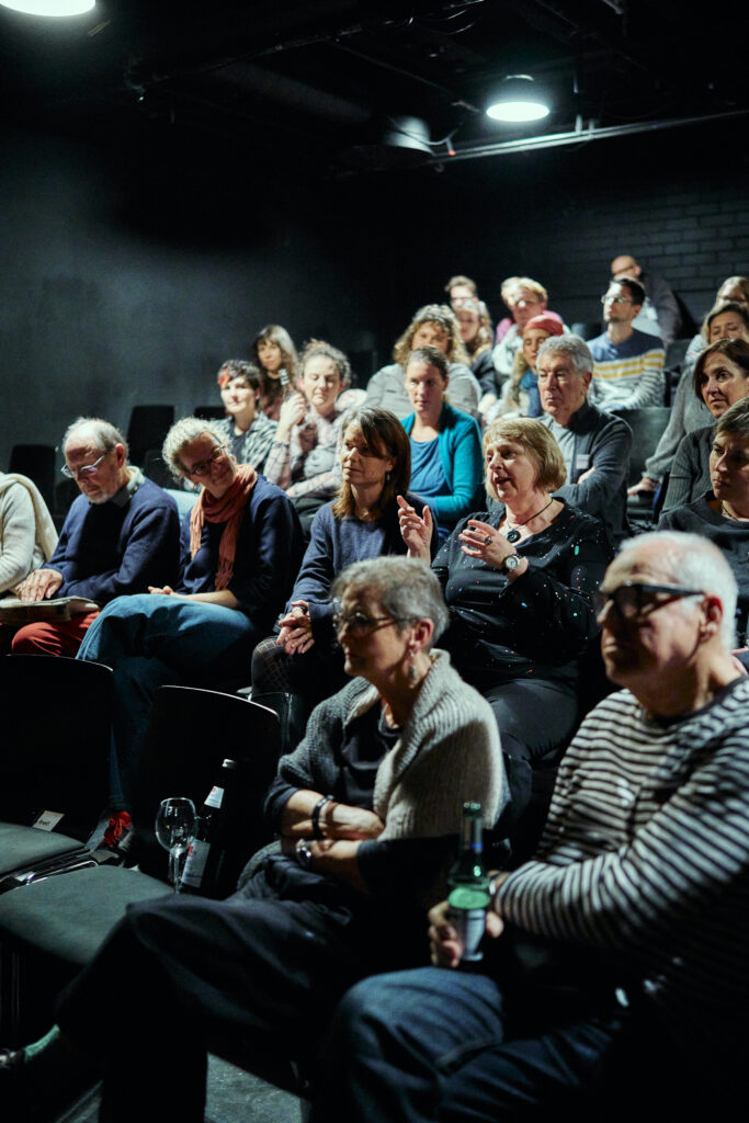 Am Sonntag vertieften wir uns mit dem eindrücklichen Monolog Pfeifen von Hadar Galron (aus dem Hebräischen von Matthias Naumann) in die Perspektive einer Frau, die Tochter von Shoah-Überlebenden ist, und um eine eigene Identität außerhalb dieser totalen Stigmatisierung ringt. Fiona Metscher verkörperte auf beeindruckende Weise diese Person. Die intensive anschließende Diskussion mit Autorin und Übersetzer verdeutlichte ebenfalls, wie nah das Thema an das Publikum gerückt war.