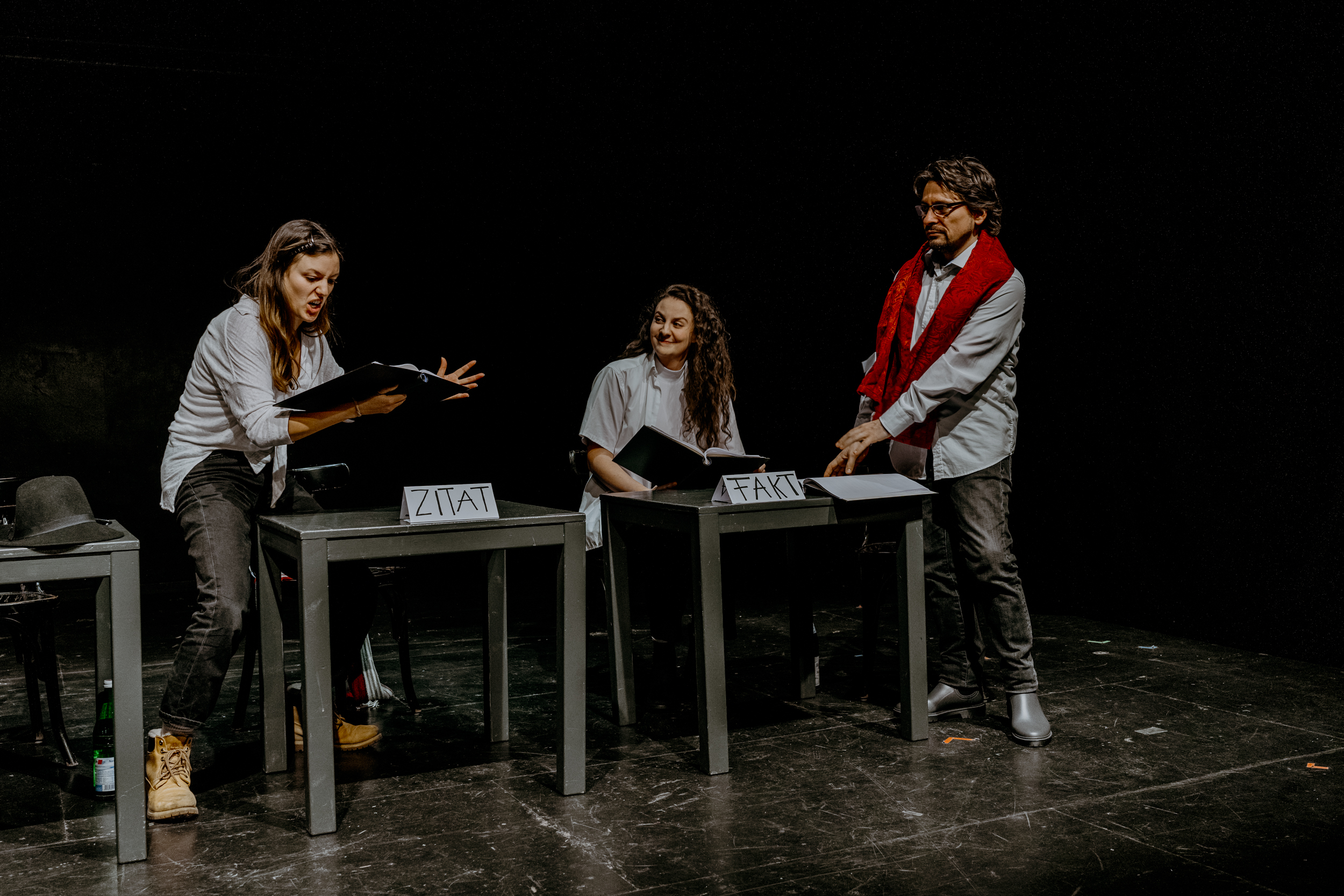 WB: Der Aussage Elon Musks steht ein Satz Hannah Ahrendts gegenüber: „Der Tod der menschlichen Empathie ist eines der frühesten und deutlichsten Zeichen dafür, dass eine Kultur gerade in Barbarei verfällt.“ In dieser Auseinandersetzung haben Theater und audiovisuelle Medien, wenn sie gut sind, die besondere Fähigkeit, im unmittelbaren Erleben eine Nähe zum Gezeigten herzustellen, die Voraussetzung für das Verstehen und Empathie sind. Es werden über die künstlerischen Gestaltungsmöglichkeiten bedeutungsvolle Aussagezusammenhänge unmittelbar erschlossen, die wirkungsvoller als abstrakte Erläuterungen sind und Lügen als solche direkt erkennbar machen. Wenn Musks gefährliches Handeln internationale Ausmaße annimmt, muss das Theater in gleicher Weise dagegen wirken: Die Übersetzerinnen Ruth Altenhofer, Johanna Marx und Claudia Zecher haben dazu durch ihre Übersetzung von „Götterspiel“ ins Deutsche einen wesentlichen Beitrag geleistet.