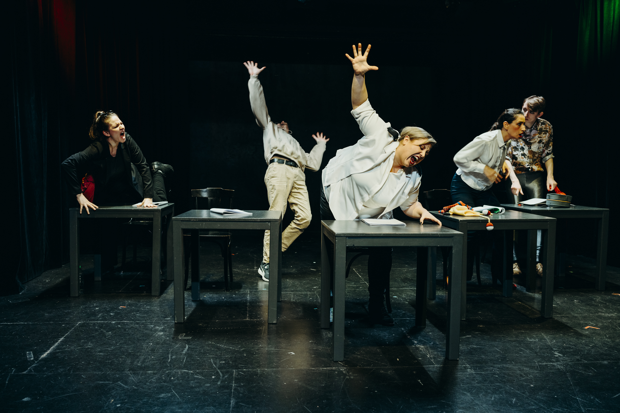 LK: Das Stück erzählt über den Krieg in der Ukraine, über die Möglichkeit zur Liebe in Zeiten des Krieges. Wie leben in einer sehr audiovisual geprägten Zeit. Gibt es besondere Herausforderungen oder Nuancen beim dramaturgischen Darstellen von Gewalt und Krieg im Theater?