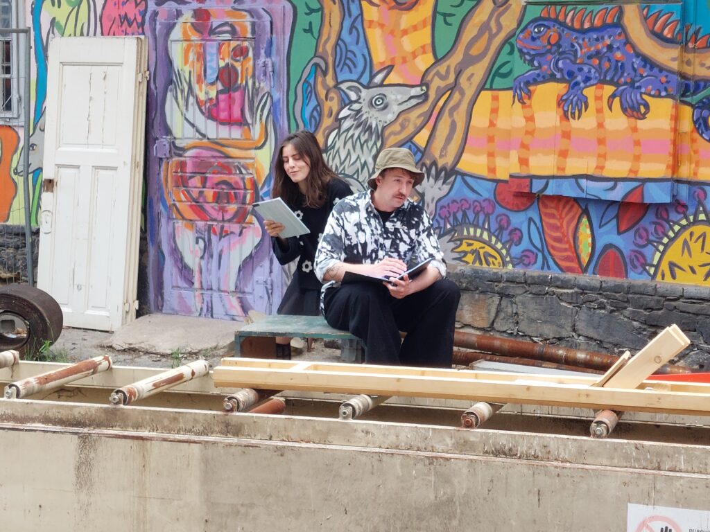 Das vorteilhafte 1:1 Zahlenverhältnis zwischen Podium und Publikum fällt auf. So konnte sich ein besonders intensives und durchweg lustiges Gespräch zum Thema „Die Stücke, der Ort, die Fiktion, die Realität und wir“ ergeben. Es ist nicht auszuschließen, dass wir uns alle, und dieses Mal mit Fayer Koch, im Theaterhaus G7 in Mannheim beim Festival STÜCK FÜR STÜCK vom 15. bis 17. November 2024 zur zweiten Lesung der Auswahl 2024 des deutschsprachigen Komitees wiedersehen.