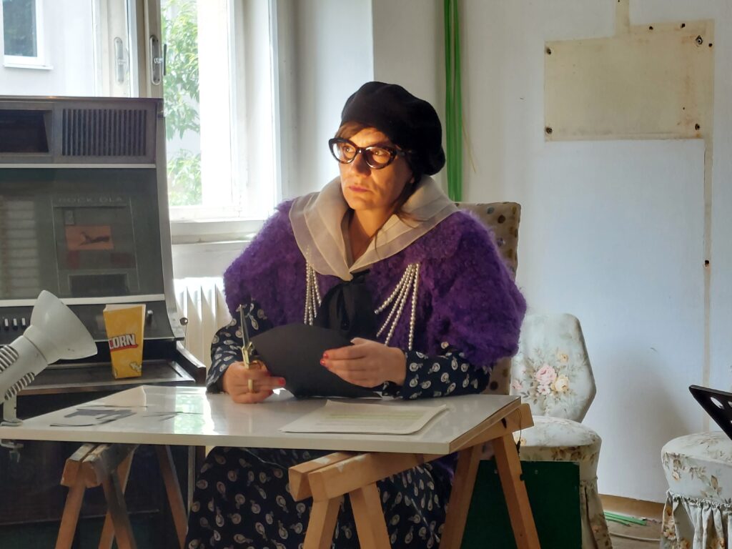 In den Dialogen und im darstellenden Bezug aufeinander konnten in kurzer Zeit Vera Hagemann (Lotte Reiniger) und Julia Novohradsky (Sekretärin) wichtige Aspekte des Stückes zeigen.